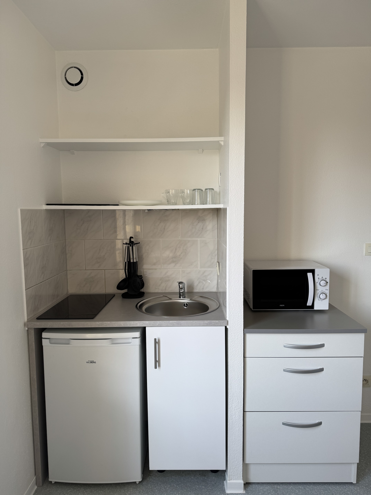 - Une pièce de vie de 12m2 avec kitchenette équipée