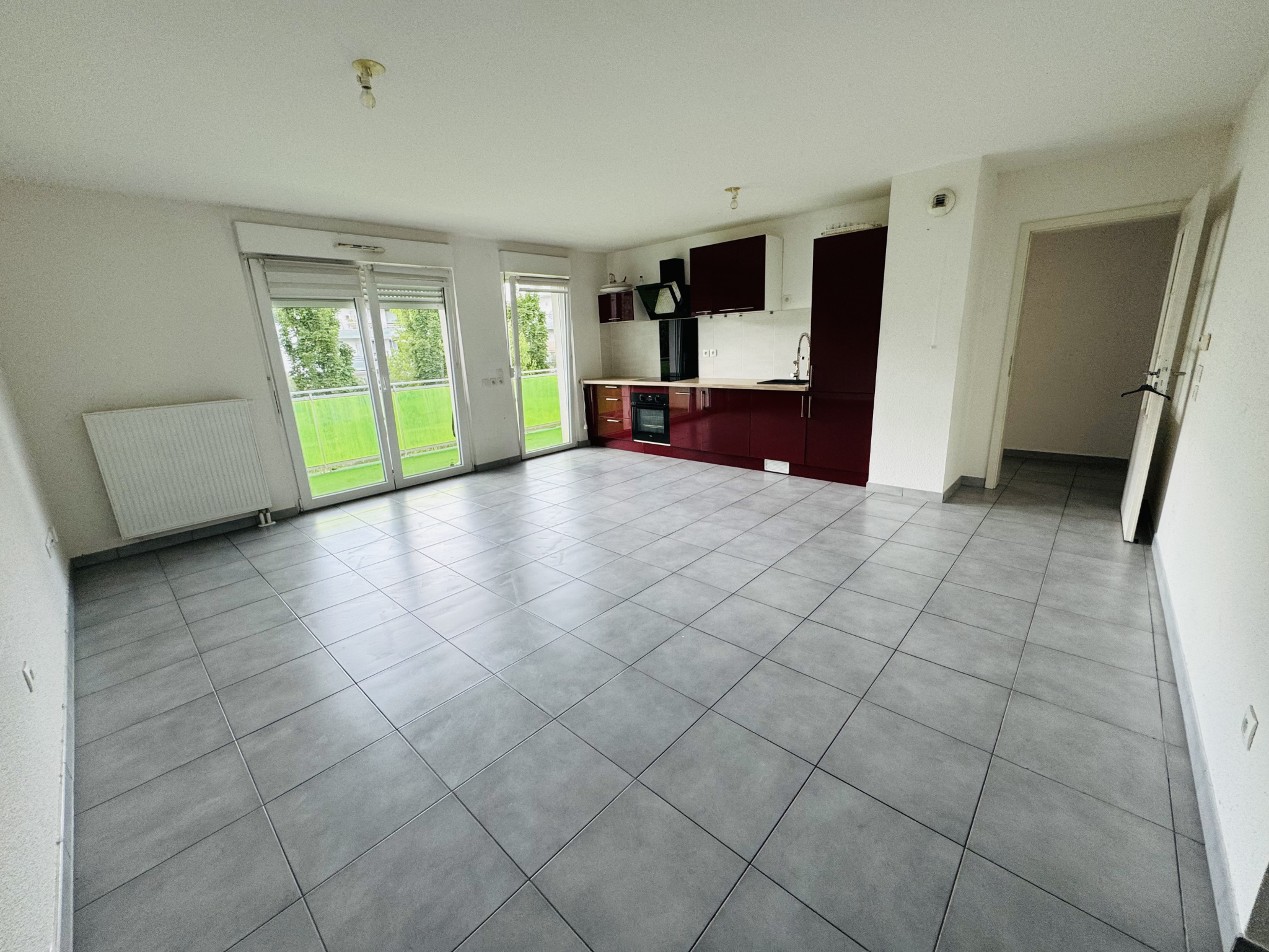- Un séjour ouvert sur cuisine de 31m2. La cuisine est équipée (four, plaque, hotte)