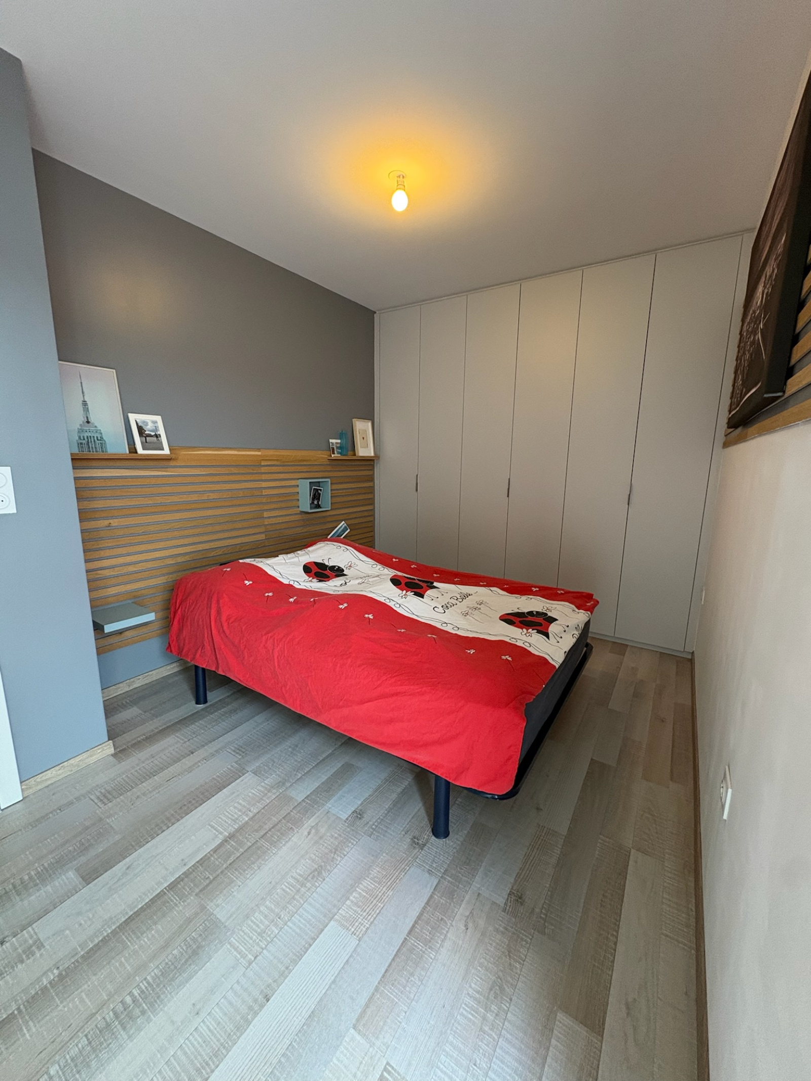- 2 chambres toutes deux équipées d’un placard