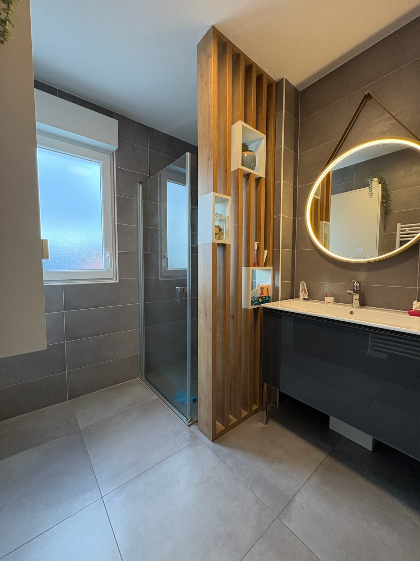 - Une salle d’eau avec douche